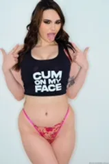 Horny brunette Aviana Violet begs for cum on her face.