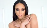 Topless in lingerie, Ebony babe Alexis Tae gaped real wide.
